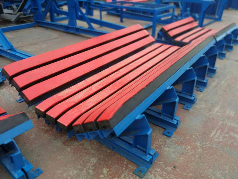 緩沖床可為皮帶機(jī)提供連續(xù)支承,且沖擊張力小,無撕裂可能;高強(qiáng)度鋼結(jié)構(gòu)支承,高彈性工程橡膠吸收沖擊力,使用壽命長 不易損壞;T型槽設(shè)計(jì),易于維護(hù)和更換;角度可調(diào)式緩沖床支撐面均勻,不易造成皮帶機(jī)跑偏;無皮帶下垂部分,不易造成物料撒落和夾扎。